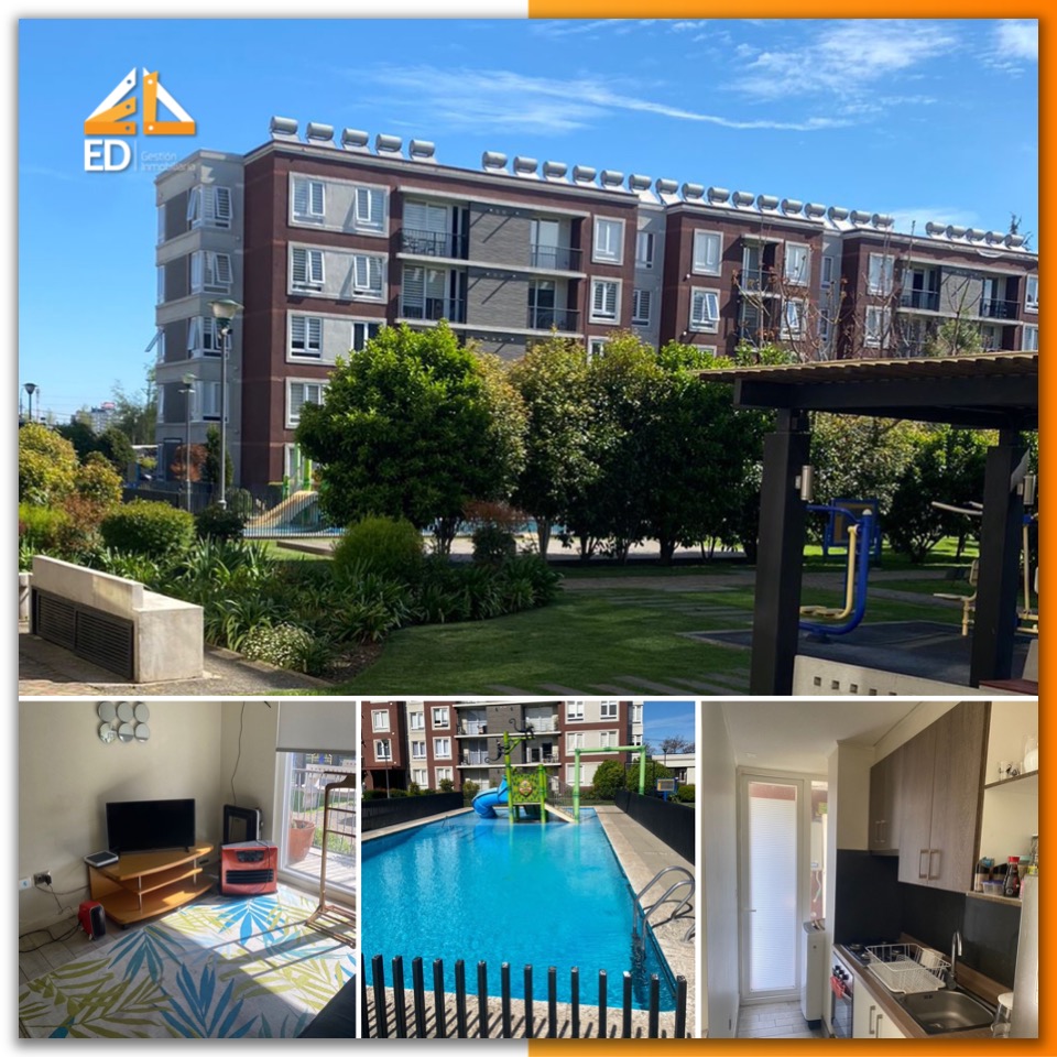 Descripción: Se arrienda a excelente y cómodo Departamento AMOBLADO en primer piso de 54 m2. Estilo tradicional. Cuenta con 2 dormitorios, 2 baños completos, cocina equipada y amoblada con campana, horno y encimera, balcón, estacionamiento y bodega. El condominio cuenta con piscina, ascensores, conserjería 24/7, hermosas áreas verdes, juegos infantiles, paneles solares independiente, bicicleteros, lavandería. Ubicado frente a la Universidad de Concepción, cercano a centros comerciales, colegios, supermercados, a sólo 5 minutos del Centro de la ciudad y con locomoción a la puerta.