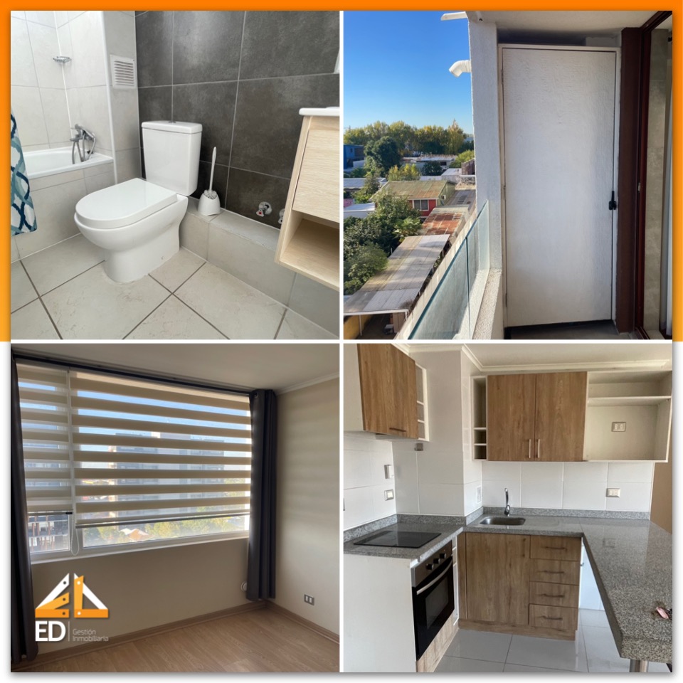 Descripción: Departamento en quinto piso, el cual cuenta con: 2 dormitorios, 2 baño completamente equipados, cocina americana amoblada y equipada con encimera, horno, campana, refrigerador, horno microondas. Además cuenta con balcón, pisos de PVC y cerámica en baño, ventanas termopanel y PVC, Sistema de calefacción eléctrico de bajo consumo. Condominio con equipamiento de sala multiuso, quincho, gimnasio, bicicletero, spa con hidromasaje, servicios de lavandería, 2 ascensores de última generación, gimnasio, salón de eventos. Departamento con estacionamiento techado, conserjería 24/7 y acceso controlado con cámaras de seguridad.